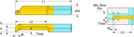 •For internal turning, profiling, grooving, and face machining of small diameters