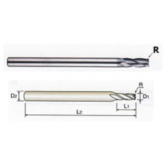 .0469 Dia. - .071 LOC - 1-1/2" OAL - .010 C/R 2 FL Carbide End Mill with .150 Reach-Nano Coated