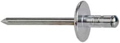 STANLEY Engineered Fastening - Size 6 Large Flange Head Steel Open End Blind Rivet - Steel Mandrel, 0.251" to 3/8" Grip, 3/16" Head Diam, 0.192" to 0.196" Hole Diam, 0.116" Body Diam