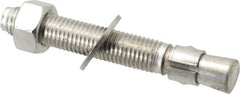 Powers Fasteners - 3/8" Diam, 3/8" Drill, 5" OAL, 2-1/4" Min Embedment Wedge Expansion Concrete Anchor - 304 Stainless Steel, Hex Nut Head, Hex Drive, 3-1/8" Thread Length