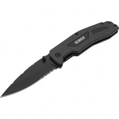 Stanley - 3-1/2" Blade, 8" OAL, Serrated & Straight Pocket Knife - 4-3/4" Closed Length, Carbon Fiber, 1 Blade, 1 Edge