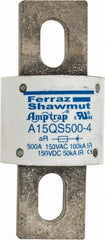 Ferraz Shawmut - 150 VAC/VDC, 500 Amp, Fast-Acting Semiconductor/High Speed Fuse - Bolt-on Mount, 3-1/2" OAL, 100 at AC, 50 at DC kA Rating, 1-1/2" Diam