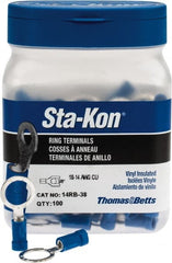 Value Collection - 16-14 AWG Partially Insulated Crimp Connection D Shaped Ring Terminal - #6 Stud, Tin Plated Copper Contact