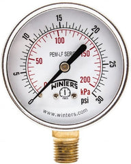 Winters - 2-1/2" Dial, 1/4 Thread, 0-30 Scale Range, Pressure Gauge - Lower Connection Mount, Accurate to 3-2-3% of Scale