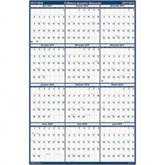 AT-A-GLANCE - 1 Sheet, 36 x 24", Erasable Wall Calendar - White & Blue