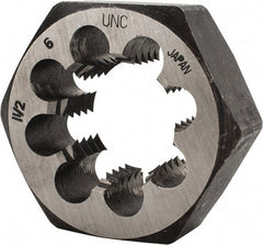Interstate - #2-56 UNC Thread, 19/32" Hex, Right Hand Thread, Hex Rethreading Die - Carbon Steel, 1/4" Thick