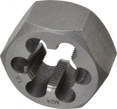 Interstate - M24x3.00 Metric Coarse Thread, 1-13/16" Hex, Right Hand Thread, Hex Rethreading Die - Carbon Steel, 1" Thick