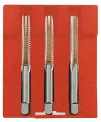 Interstate - 5/16-18 UNC, 4 Flute, Bottoming, Plug & Taper, Bright Finish, High Speed Steel Tap Set - Right Hand Cut, 2-23/32" OAL, 1" Thread Length
