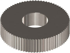 Made in USA - 1/2" Diam, 70° Tooth Angle, 80 TPI, Standard (Shape), Form Type High Speed Steel Right-Hand Diagonal Knurl Wheel - 3/16" Face Width, 3/16" Hole, Circular Pitch, 30° Helix, Bright Finish, Series EP