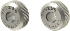 Made in USA - 5/16" Diam, 70° Tooth Angle, 50 TPI, Standard (Shape), Form Type Cobalt Straight Knurl Wheel - 5/32" Face Width, 1/8" Hole, Circular Pitch, Bright Finish, Series BP