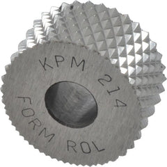 Made in USA - 3/4" Diam, 80° Tooth Angle, Standard (Shape), Form Type High Speed Steel Female Diamond Knurl Wheel - 3/8" Face Width, 1/4" Hole, 128 Diametral Pitch, 30° Helix, Bright Finish, Series KP