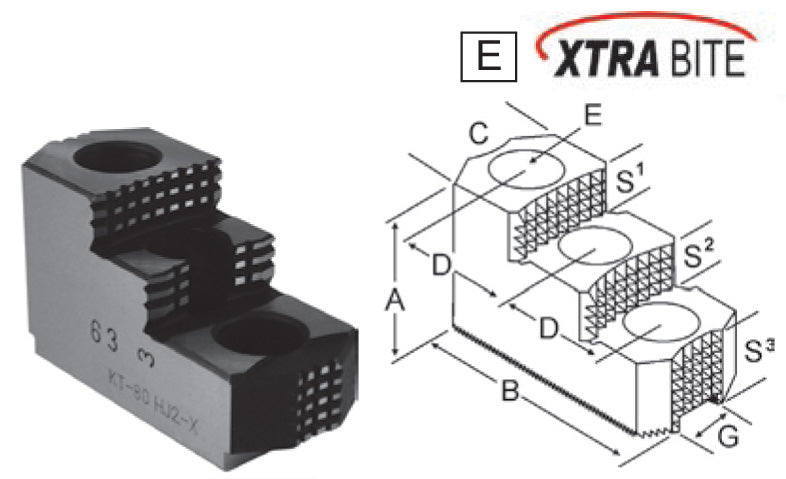 - XTRA BITE -very aggressive bite. Has conical teeth for extra gripping power and ground body to provide improved runout.
