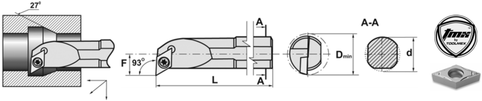 SANDVIK Style Boring Bars - Min bore .750-1.250 - SDUCR Bars using DCMT (55° Diamond) Inserts
