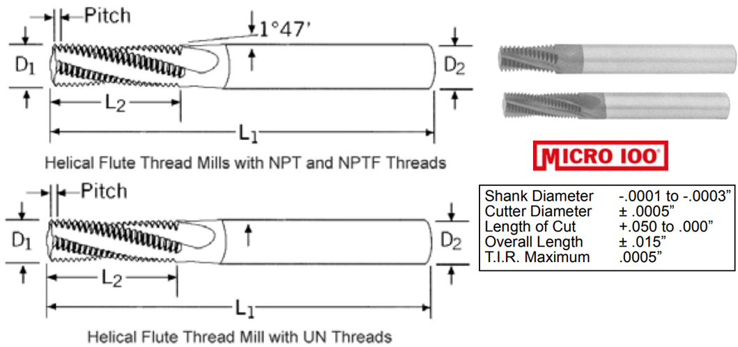 HELICAL FLUTE THREAD MILLS- NPT, NPTF THREADS