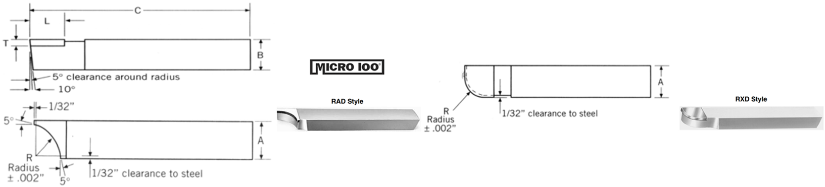 | Set of 8: 1/32 to 1/4 radius in 1/32 increments | MI-RXD22 | MI-RXL22 | MI-RAD22 | MI-RAL22 | |||||