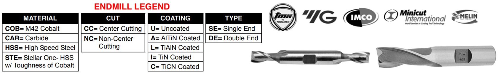 2 Flute Square End Endmills (HSS, Cobalt & Carbide)- For Aluminum, Plastic & Non-Ferrous Materials