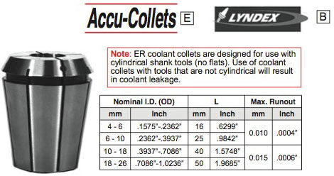 ER INCH & METRIC COOLANT COLLETS