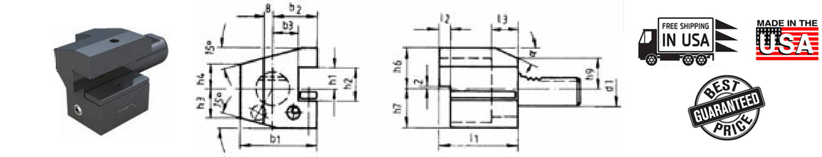 | d1 | b1 | b2 | b3 | h1 in | h1 mm | h2 | h3 | h4 | h6 | h7 | h9 | L1 | L2 | L3 | α | Part Number |