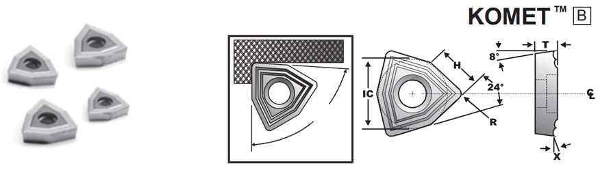 | Drill Dia | IC | T | H | X | R | Komet Grade BK84 | Komet Grade K10 | Komet Grade P40 | Screw | Torx Driver |
