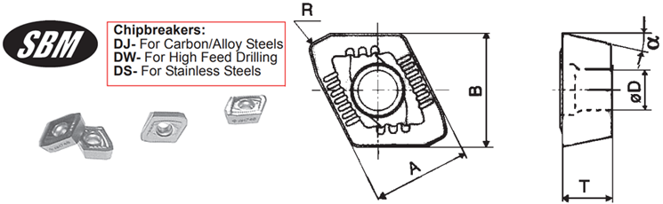 | Drill Dia | I. C. | T | Length | Tungaloy Reference No. | For Steel, Stainless, HiTemp Alloys | For non-ferrous, Stainless, Hi Temp Alloys | For Steel, Alloy steel (High Feed, Alum) | Screws | Wrench |