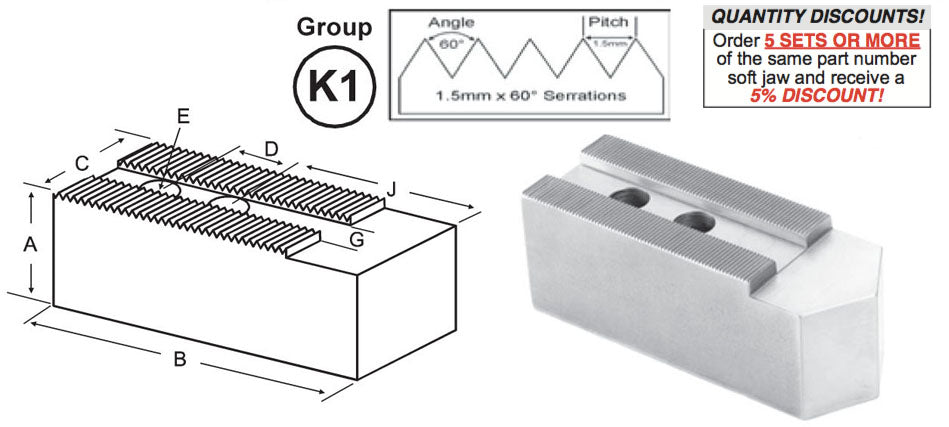 SOFT JAWS FLAT - 1.5 mm x 60° Serrations - Chuck Size 4 - 8