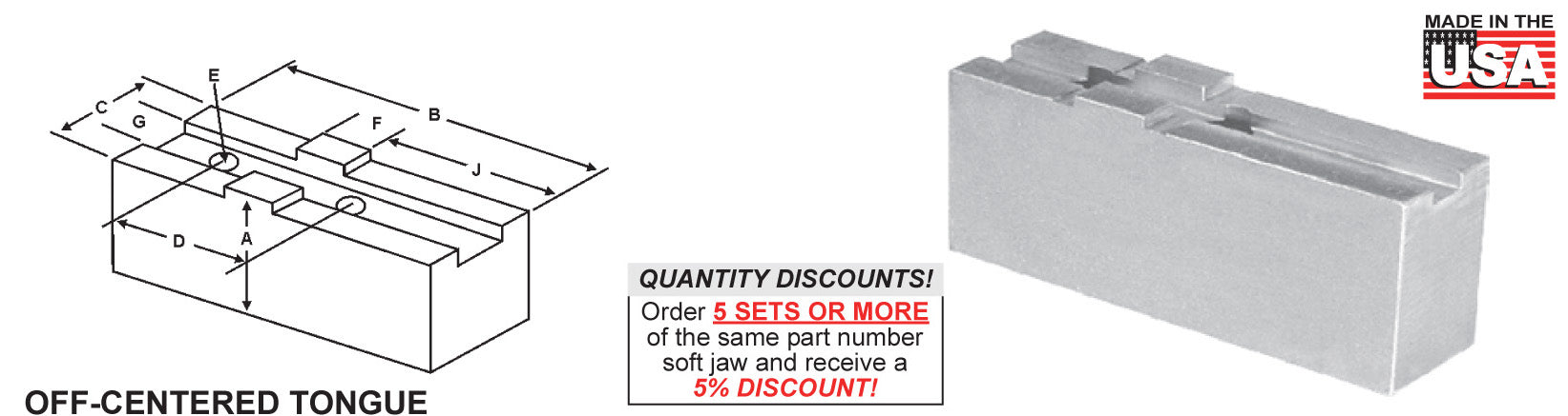 SOFT JAWS FLAT - METRIC TONGUE & GROOVE **FOR USE ON: Forkardt, Rohm & SMW Chucks