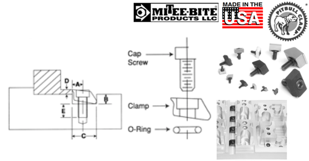 The Pitbull™ Clamp is a unique method of holding your workpieces using a low gripping profile, generating both vertical and horizontal clamping forces. For example, the Pitbull™ Clamp which uses a 8-32 screw clamps on only .100 of an inch while generating up to 1500 lbs. of vertical and horizontal clamping forces. It uses a standard cap screw and an oil resistant O-ring, while using only a 1/2" square of your fixture space.