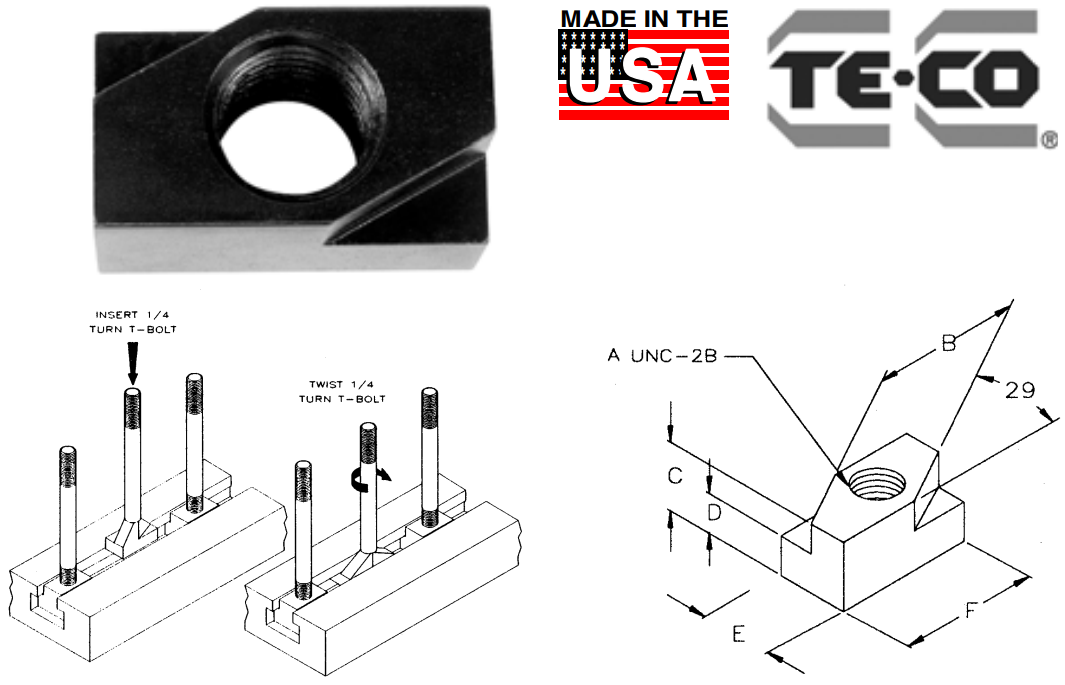 - *Quarter Turn T-Slot Nuts are undersized to fit machine table slot.