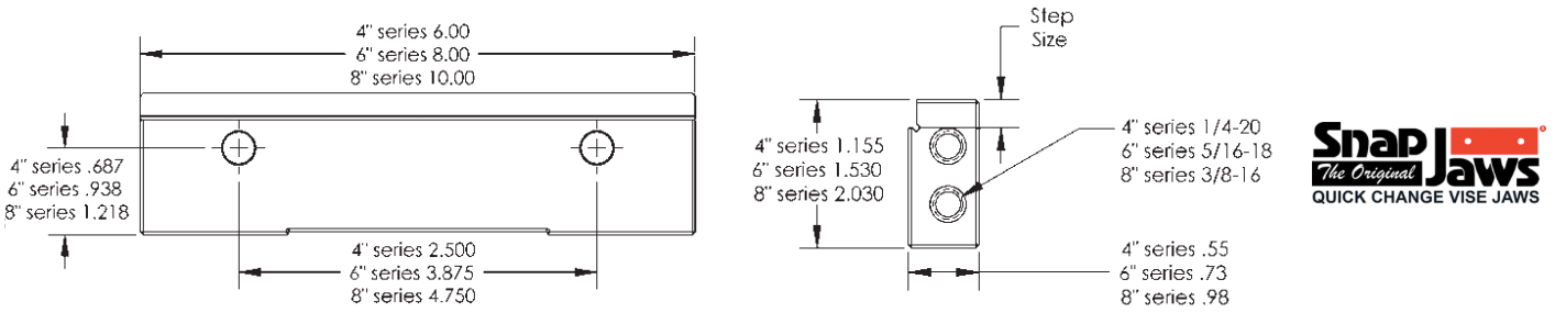 Extension Jaws are 2 inches longer for increased support. Hardened, precision ground, and available in 10 different step sizes. Expand your vise capacity with extension step jaws. Prices are pulled from our database in real time. Press Add button to see product price.