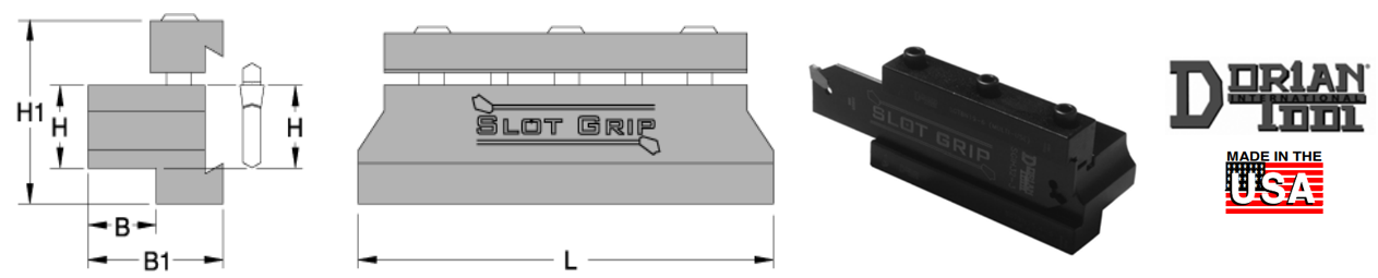 Slot Grip block toolholders are designed to hold Slot Grip and competitive cut-off blades firm and secure using a wedge locking system. Center height of the cutting edge and shank height are equal to allow easy set-up. Block toolholders are available in a wide range of sizes and are available in either a two piece design for versatility or one piece design for economy.