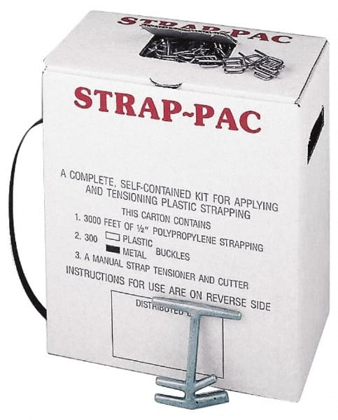 Value Collection - 3,000 Foot Long x 1/2 Inch Wide x 0.015 Inch Thick, Economy Polyproylene Strapping Kit - 260 Lbs Tensile Strength, Contains Self Dispensing Box, Polypropylene Strapping, 300 Metal Buckles and Tensioning Cutting Tool