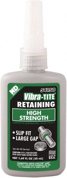Vibra-Tite - 50 mL Bottle, Green, High Strength Liquid Retaining Compound - Series 541, 24 hr Full Cure Time, Heat Removal