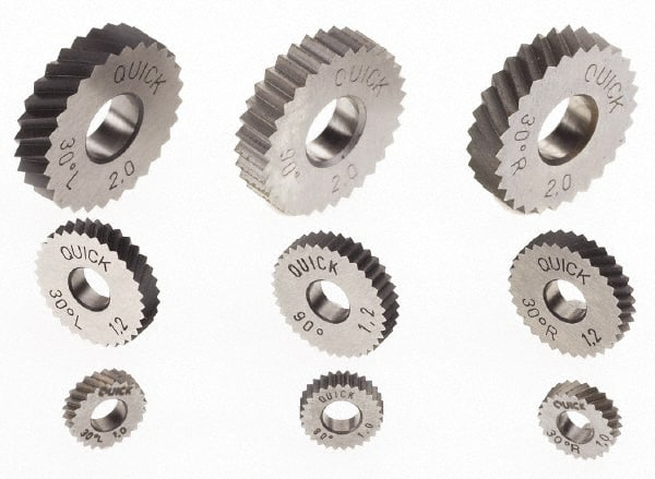 Value Collection - 9/16" Diam, 30° Tooth Angle, 21 TPI, Standard (Shape), Cut Type Powdered Metal High Speed Steel Left-Hand Diagonal Knurl Wheel - 0.118" Face Width, Circular Pitch, 30° Helix, Bright Finish