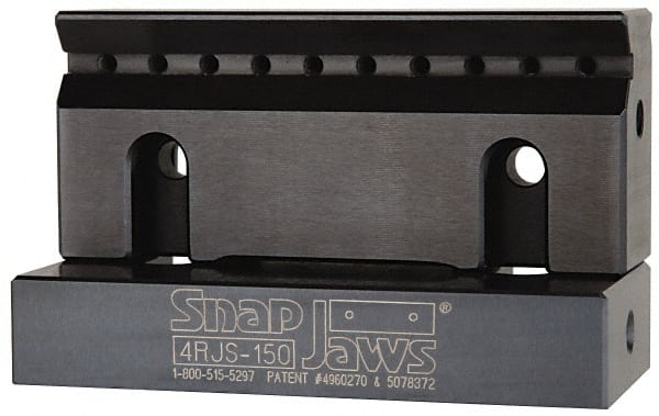 Snap Jaws - 4" Wide x 1-3/4" High x 1" Thick, V-Groove Vise Jaw - Steel, Fixed Jaw, Compatible with 4" Vises