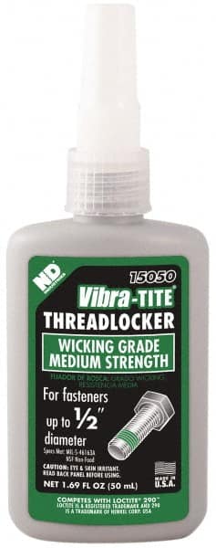 Vibra-Tite - 50 mL Bottle, Green, Medium Strength Liquid Threadlocker - Series 150, 24 hr Full Cure Time, Hand Tool Removal
