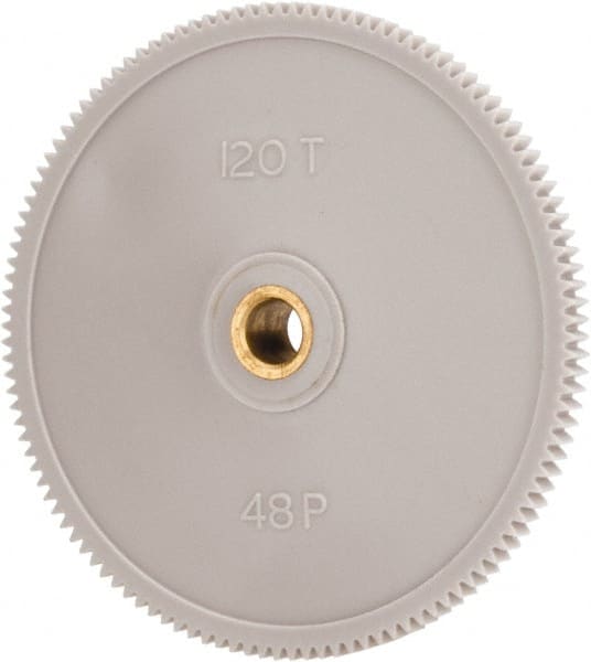 Made in USA - 48 Pitch, 2-1/2" Pitch Diam, 2.542" OD, 120 Tooth Spur Gear - 1/8" Face Width, 1/4" Bore Diam, 39/64" Hub Diam, 20° Pressure Angle, Acetal