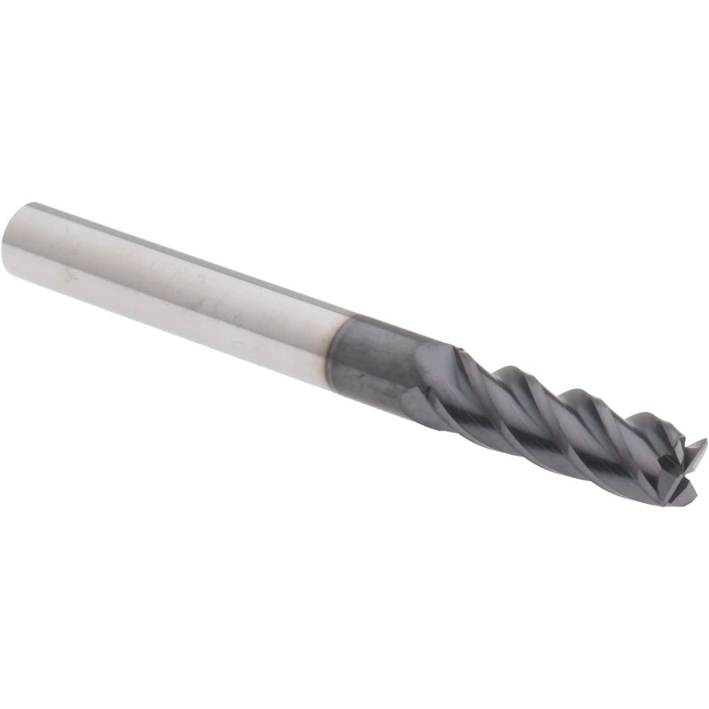 Corner Radius End Mill: 1/4" Dia, 3/4" LOC, 0.0100" Radius, 4 Flute, Solid Carbide