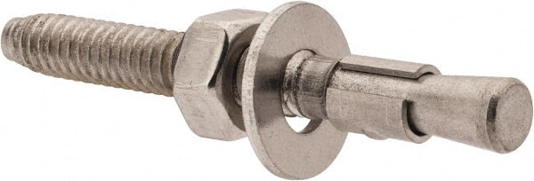 Red Head - 1/4" Diam, 1/4" Drill, 2-1/4" OAL, 2-1/2" Min Embedment Wedge Expansion Concrete Anchor - 304 Stainless Steel, Hex Nut Head, Hex Drive, 1-1/4" Thread Length