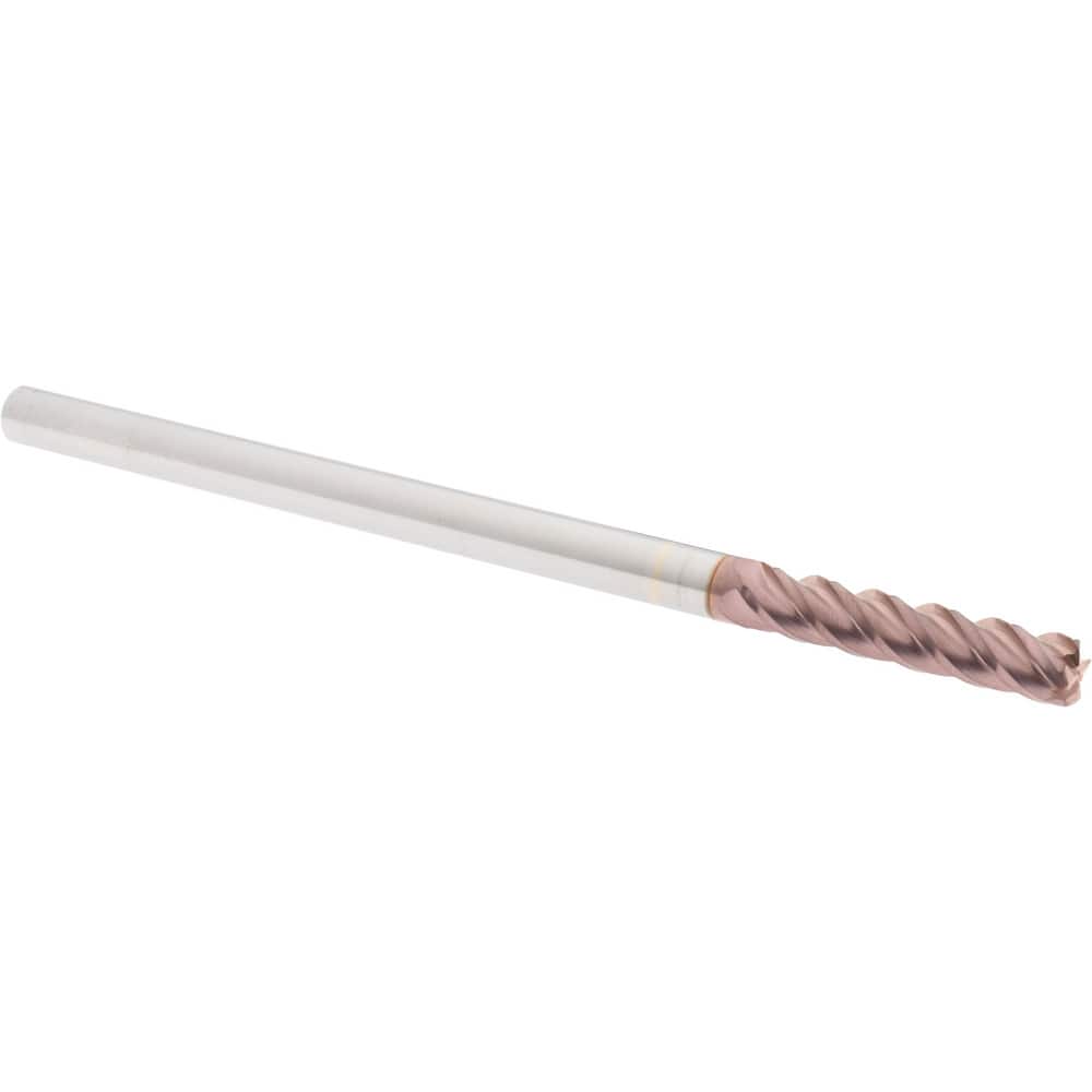 Corner Radius End Mill: 5/16″ Dia, 1-1/2″ LOC, 0.045″ Radius, 4 Flutes, Solid Carbide 6″ OAL, 5/16″ Shank Dia, 40 ° Helix, TiCN Coated, Corner Radius End, Centercutting