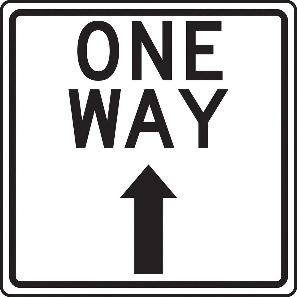 Adhesive Backed Floor Signs; Message Type: Traffic Control; Message/Graphic: Message & Graphic; Message or Graphic: Message & Graphic; Legend: ONE WAY; Material: Vinyl; Legend Color: Black; Color: White, Black; Shape: Square