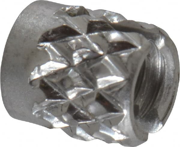 E-Z LOK - #4-40 UNC Stainless Steel Flush Press Fit Threaded Insert for Plastic - 3/16" OAL, 0.166" Insert Diam, 5/32" Hole Diam, 5/32" Drill