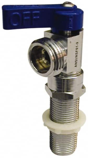 B&K Mueller - MIP and CxC 1/2 Inlet, 125 Max psi, Chrome Plated, Brass 1/4 Turn Ball Valve Design - 3/4 Hose Thread Outlet, Angle, Blue Handle