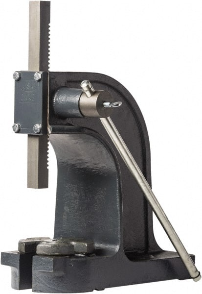 Dake - 1" Ram, 4-1/2" Throat Depth, 1-1/2 Ton Manual Arbor Press - 7-1/8" Max Work Height x 9" Max Work Width, Single Leverage, 32:1 Leverage Ratio, 6" Base Width x 14" Base Depth