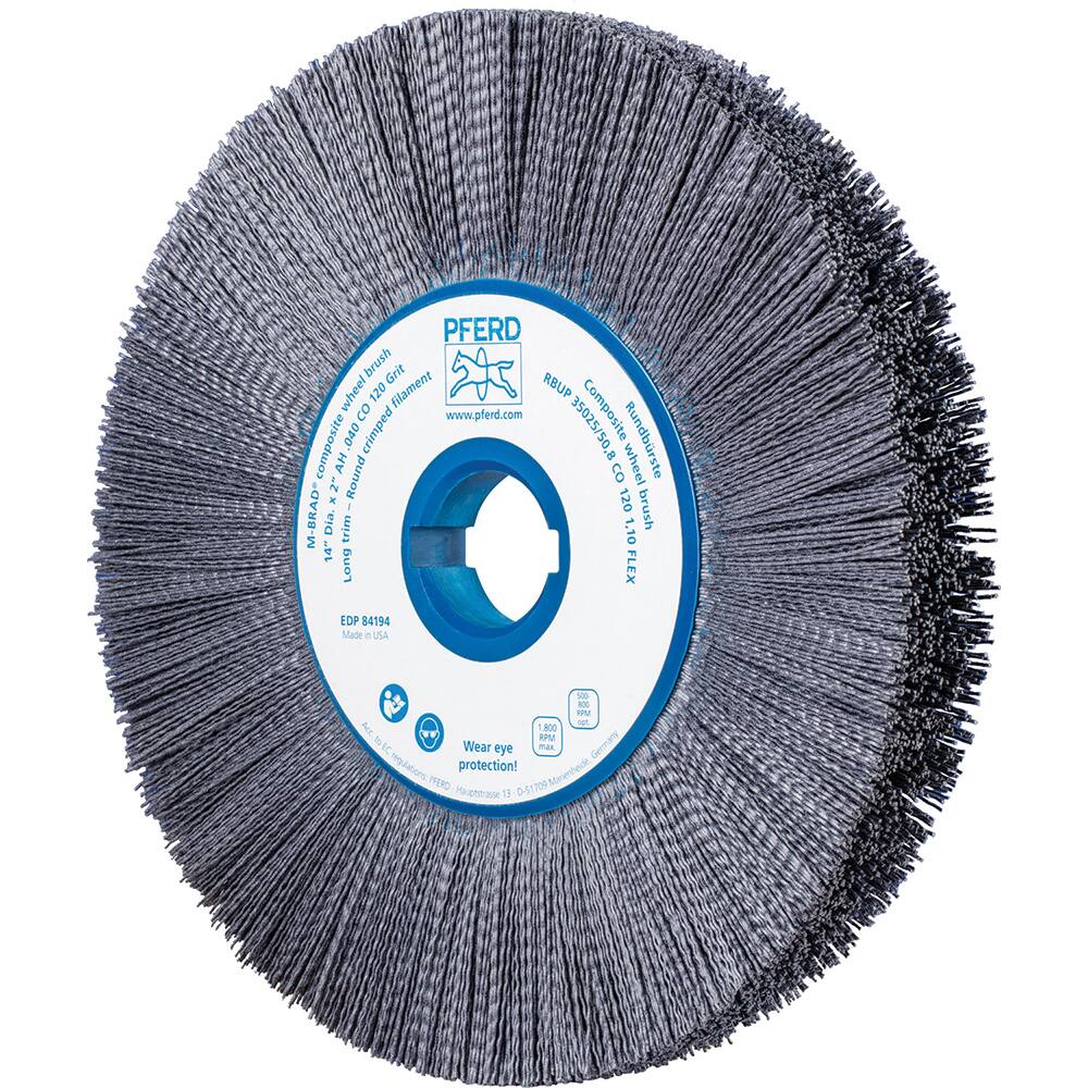 PFERD - Wheel Brushes; Outside Diameter (Inch): 14 ; Wire Type: Crimped; Round ; Fill Material: Nylon; Ceramic ; Trim Length (Inch): 3-1/2 ; Filament Wire Diameter Range: 0.0300 & Above ; Maximum RPM: 1800.000