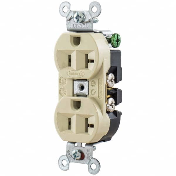 125V 20A NEMA 5-20R Industrial Grade Ivory Straight Blade Duplex Receptacle 1 Phase, 2 Pole, 3 Wire, Self-Grounding, Flush Mount
