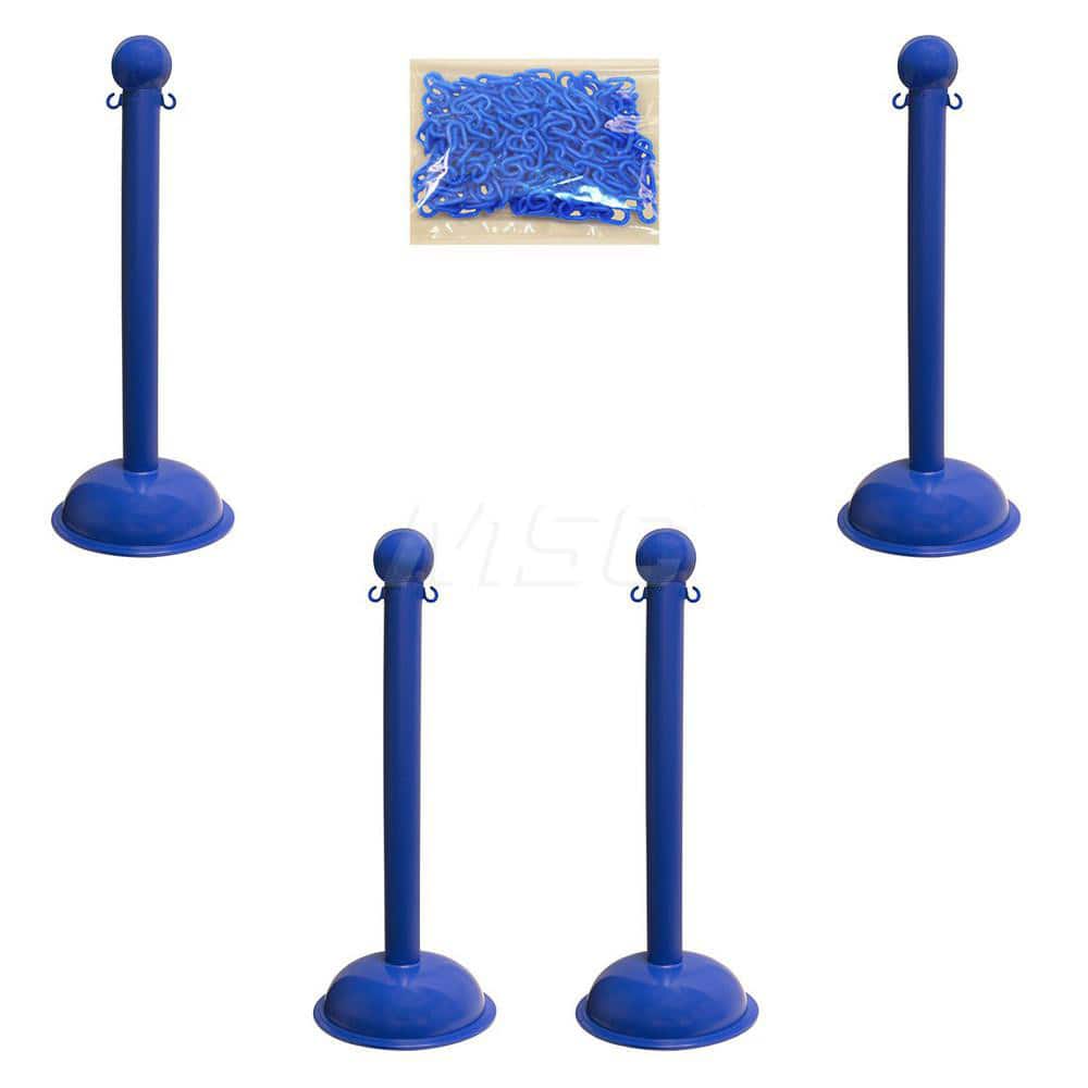 Barrier Rope & Chain; Type: Stanchion & Chain Kit; Material: Plastic; Color: Blue; Rope/Chain Material: Plastic; Hook Fitting Material: None; Snap End Material: None; Color: Blue; Length (Feet): 30.00; 30.000; Overall Length: 30.00; Includes: (6) Complete