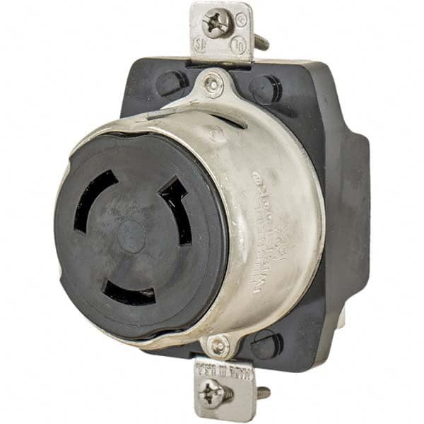 Twist Lock Receptacles; Receptacle/Part Type: Receptacle; Gender: Female; NEMA Configuration: Non-NEMA; Flange Style: No Flange; Amperage: 50 A; Voltage: 125 V ac; Number Of Poles: 2; Number Of Wires: 3; Maximum Cord Diameter: 16.60 mm; Resistance Feature