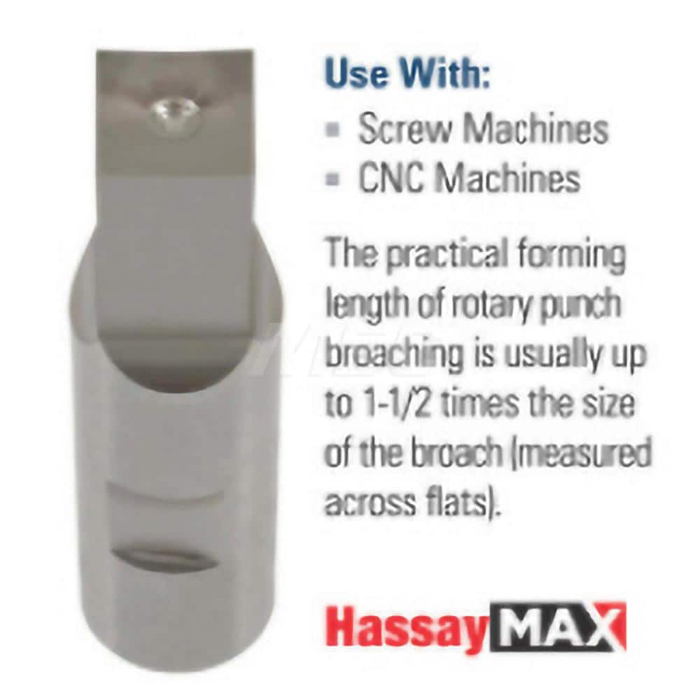 Rotary Broaches; Type: Square Broaches; Size (mm): 2.50 mm; Depth of Cut (Inch): 0.1875; Tool Material: Hardened Proprietary Alloy; Shank Size (mm): 0.3150; Shank Size (Decimal): 0.3150; Coated: Coated; Overall Length (Inch): 1.25; Broach Body Width: 0.10