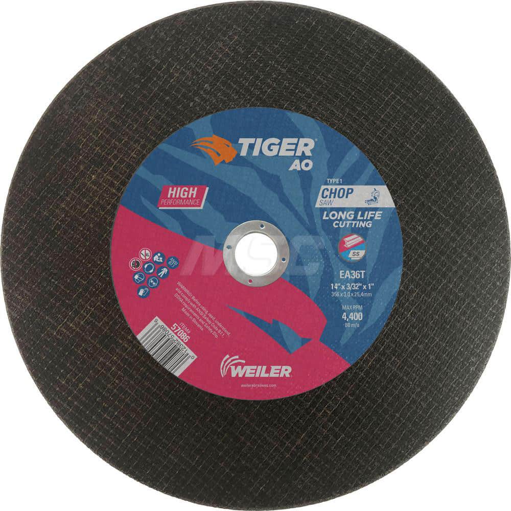 Cut-Off Wheel: Type 1, 14″ Dia, 3/32″ Thick, Aluminum Oxide Reinforced, 36 Grit, 4400 Max RPM, Use with Chop Saws