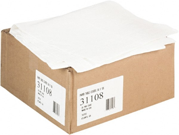 Tatco - Paper Table Cover, Embossed, with Plastic Liner, 54" x 108", White, 20/Carton